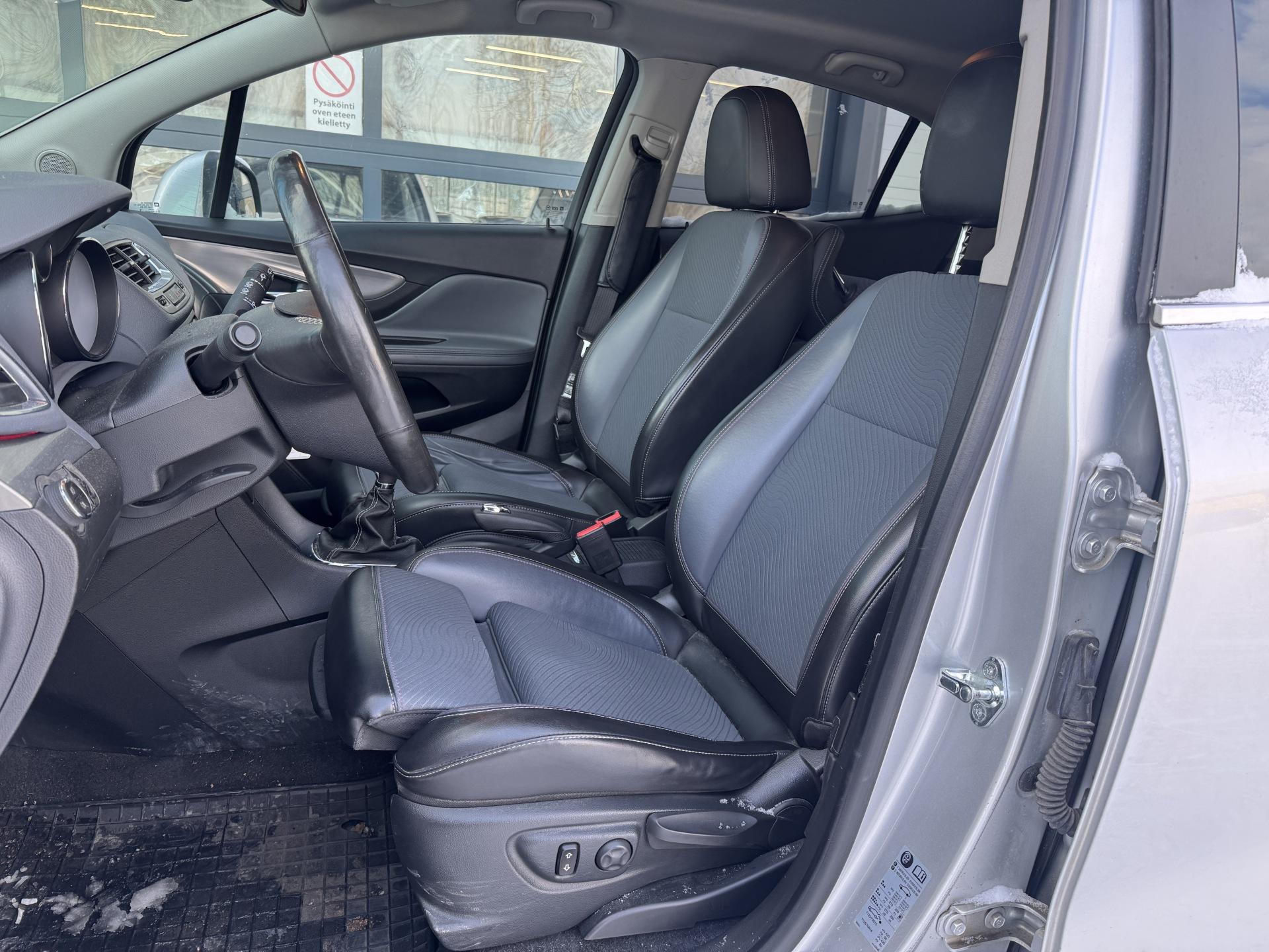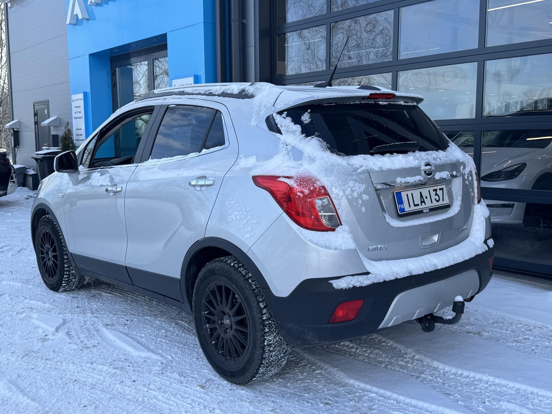 Autolähteen Jääkausi - viileimmät autoedut nyt! 1. Kiinteä rahoituskorko 2,79% koko laina-ajalle 2. Ensimmäinen maksuerä mahdollista maksaa vasta 5/2026 (eli hetken saat ajella ihan rauhassa) 3. Vakuutus vuodeksi -20% 4. Lisäturva alk. 695 € tai 8 €/kk 5. Kotiintoimitus alkaen 0€ Nopeimmat nappaa parhaat - ennen kuin Jääkausi sulaa!Rajusti varusteltu Opel Mokka hyvällä huoltohistorialla! Suomi-auto!Huoltokirja (viimeisin 118tkm kohdalla), Kahdet renkaat alumiinivanteilla, Vetokoukku, Vakionopeudensäädin, Nopeudenrajoitin, Lämmitettävä ohjauspyörä, Peruutuskamera, Pysäköintitutkat, Navigointijärjestelmä, Lohkolämmitin sisätilanpistokkeella, Kaksialueinen automaatti-ilmastointi, Bluetooth-puhelinliitäntä, Puolinahka- istuimet, Nahkainen monitoimiohjauspyörä, Penkinlämmittimet, Aux-liitäntä, USB, Isofix, Yms!Kysy tähän autoon edullinen vaihto- tai rahoitustarjous!
