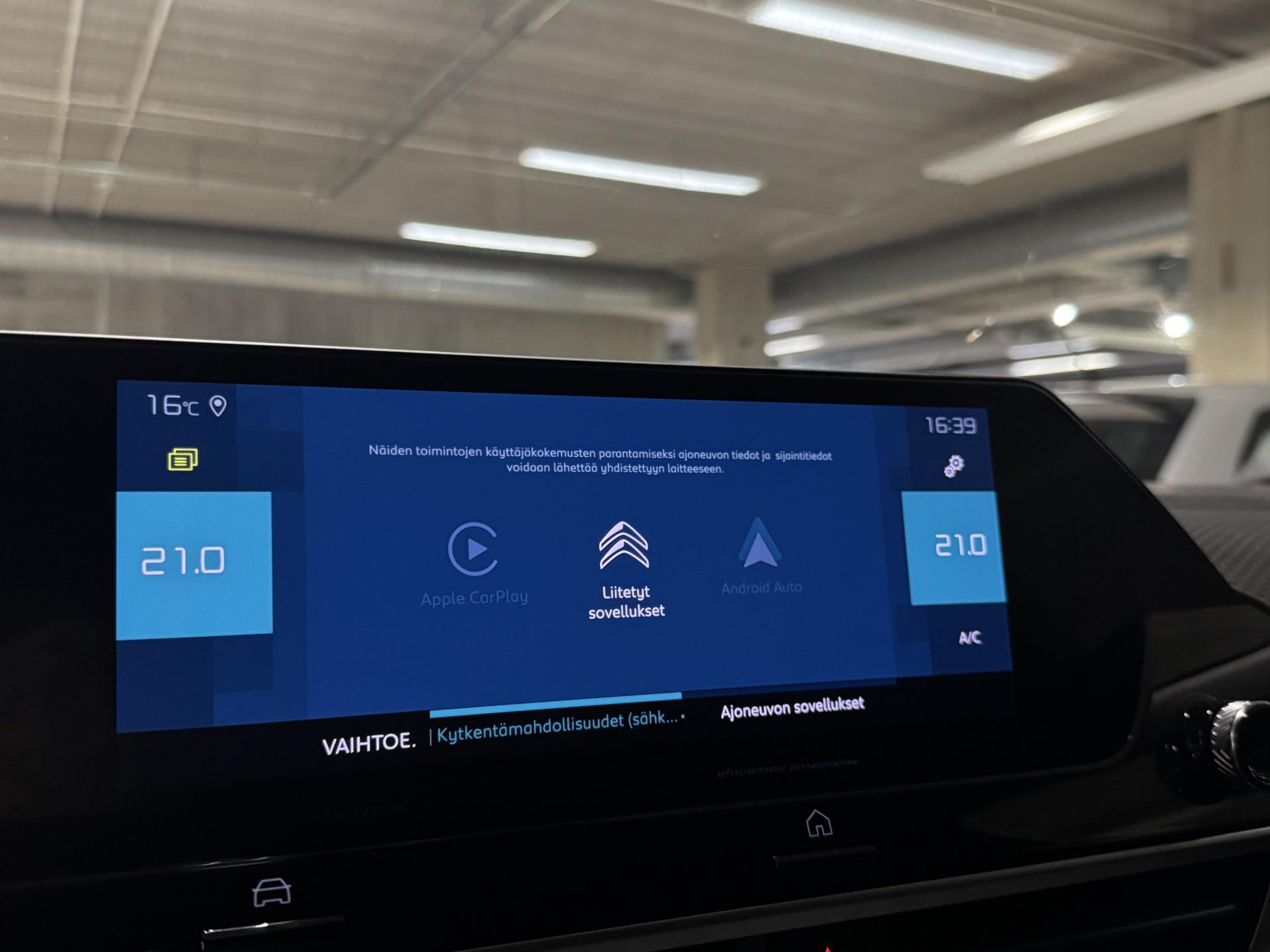 Hyödynnä ainutlaatuinen BL4CK WEEK -kampanja ja päivitä autosi poikkeuksellisen edullisin ehdoin. Tarjoamme nyt kokonaisuuden, jossa rahoitus, vakuutusedut ja maksujoustot tekevät auton hankinnasta helpompaa kuin koskaan. Edullinen rahoitus: Saat auton käyttöösi jopa 1,99 % rahoituskorolla + kulut (Rahoituskorko sidottu Euribor 1 kk -viitekorkoon + 0,1 % marginaali) Maksamisen joustoa: Osta auto nyt ja aloita maksaminen vasta myöhemmin saat jopa 3 kuukautta maksuvapaata, jolloin ensimmäinen erä voi siirtyä juhannuksen jälkeiseen aikaan. Turvaa edullisemmin: Kasko nyt -20 % ensimmäiseksi vuodeksi, jotta ajaminen on huolettomampaa heti alusta alkaen. Lisäedut ja tärkeää tietoa: Kampanja on voimassa rajoitetun ajan joten nyt on oikea hetki toimia! 1,99 % rahoituskorko koskee enintään 40 000 € rahoitusosuutta Yli 40 000 € rahoituksissa korko 2,99 % + kulut Lähes kaikkiin autoihin saatavilla laaja lisäturva jopa 3 vuodeksi Lisäturvan voi kätevästi sisällyttää kuukausierään Lisätietoa lisäturvasta: https://fragus.com/fi/tuotteemme-ja-palvelum ... Lisäturvan hinnasto: https://autolahde.fi/lisaturva/Todella kattavasti varusteltu Citroen e-C4! Akkutakuu voimassa 160tkm tai 6/2030 asti. Akkutesti tehty: SoH 92,2%!Kahdet hyvät renkaat alumiinivantein, Huoltokirja (Merkkihuollettu), Adaptiivinen vakionopeudensäädin, Lämmitettävä tuulilasi, Lämmitettävä ohjauspyörä, Ohjaamon esilämmitys ajastuksella, Tuulilasinäyttö (HUD), Kaistavahti, Kuolleen kulman varoitin, Hätäjarrutusavustin, Törmäysvaroitin, Liikennemerkkien tunnistusjärjestelmä, LED-ajovalot kaukovaloassistentilla, Peruutuskamera, Avaimeton kulku- ja käynnistys, Pysäköintitutkat, Tunnelmavalo, Navigointijärjestelmä, Apple CarPlay/Android Auto, Puolinahkaistuimet, Nahkainen monitoimiohjauspyörä, Bluetooth-puhelinliitäntä mediansiirrolla, USB, Isofix, Yms!Kysy tähän autoon edullinen vaihto- tai rahoitustarjous!