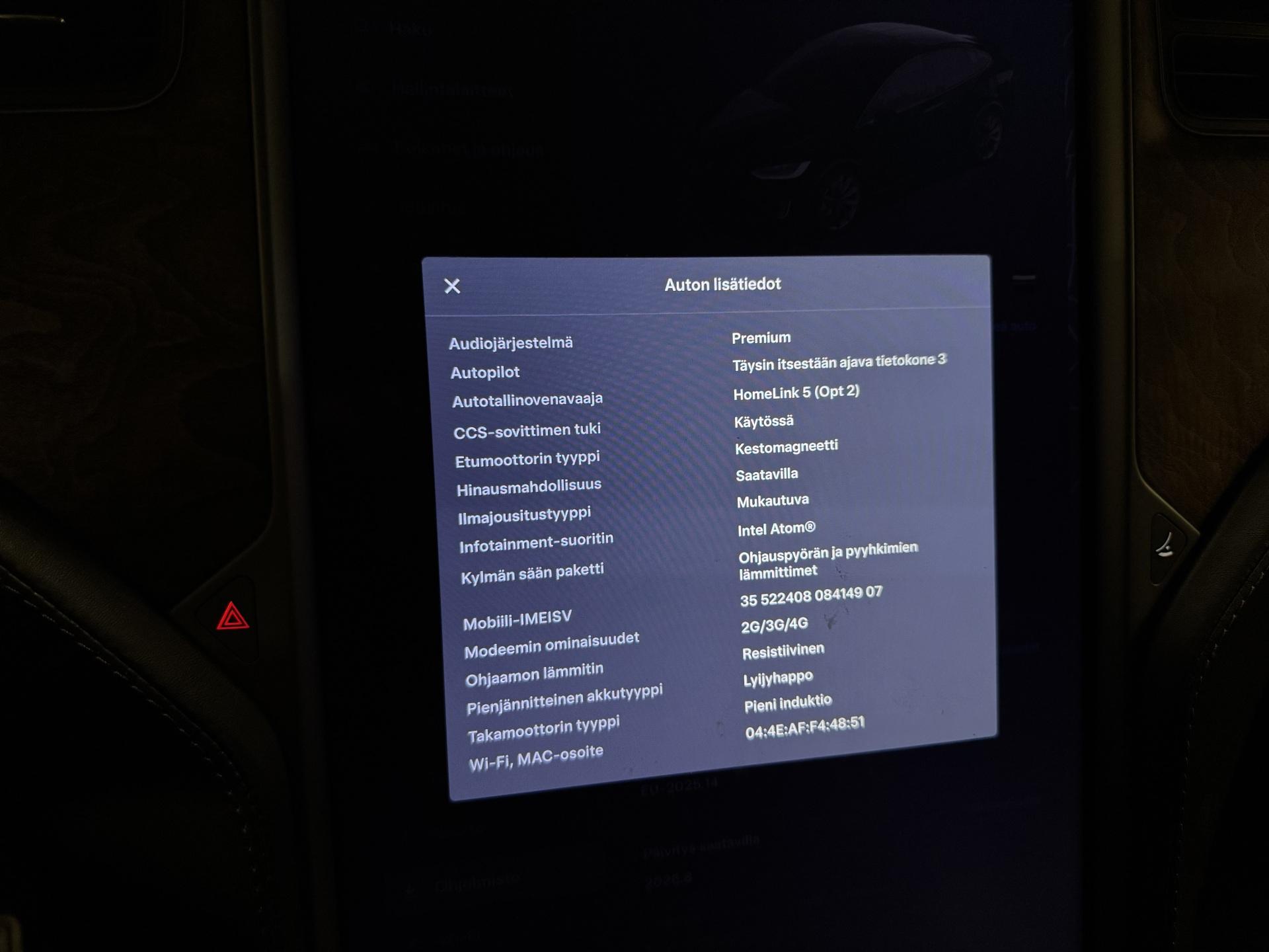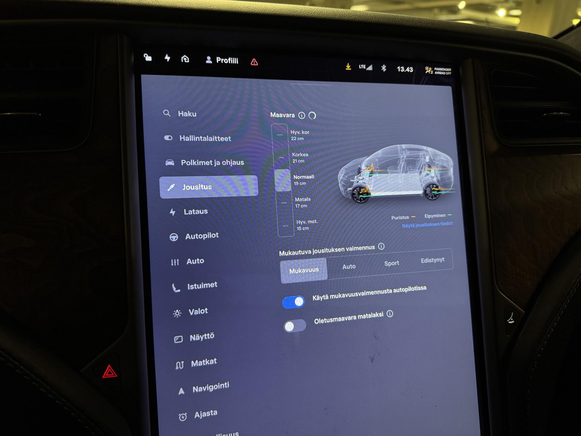 Hyödynnä ainutlaatuinen BL4CK WEEK -kampanja ja päivitä autosi poikkeuksellisen edullisin ehdoin. Tarjoamme nyt kokonaisuuden, jossa rahoitus, vakuutusedut ja maksujoustot tekevät auton hankinnasta helpompaa kuin koskaan. Edullinen rahoitus: Saat auton käyttöösi jopa 1,99 % rahoituskorolla + kulut (Rahoituskorko sidottu Euribor 1 kk -viitekorkoon + 0,1 % marginaali) Maksamisen joustoa: Osta auto nyt ja aloita maksaminen vasta myöhemmin saat jopa 3 kuukautta maksuvapaata, jolloin ensimmäinen erä voi siirtyä juhannuksen jälkeiseen aikaan. Turvaa edullisemmin: Kasko nyt -20 % ensimmäiseksi vuodeksi, jotta ajaminen on huolettomampaa heti alusta alkaen. Lisäedut ja tärkeää tietoa: Kampanja on voimassa rajoitetun ajan joten nyt on oikea hetki toimia! 1,99 % rahoituskorko koskee enintään 40 000 € rahoitusosuutta Yli 40 000 € rahoituksissa korko 2,99 % + kulut Lähes kaikkiin autoihin saatavilla laaja lisäturva jopa 3 vuodeksi Lisäturvan voi kätevästi sisällyttää kuukausierään Lisätietoa lisäturvasta: https://fragus.com/fi/tuotteemme-ja-palvelum ... Lisäturvan hinnasto: https://autolahde.fi/lisaturva/Todella tyylikäs 6-paikkainen Tesla Model X! Seuraava katsastus: 2/2027. Akkutesti tehty - Soh 83,7%!Teslan akkutakuu voimassa 12/2027 asti ilman km-rajaa!Autopilot (täysin itsenäinen ajo), Adaptiivinen vakionopeudensäädin, Mukautuva ilmajousitus, Premium -audiojärjestelmä, Talvipaketti (Lämmitettävä ohjauspyörä, Pyyhkimien lämmittimet, Penkinlämmittimet edessä ja takana), Vetokoukku, Sähkösäätöiset istuimet (kuljettajalla muistit), Tesla App etähallinta, Sähkötoiminen takaluukku, Kuolleen kulman varoitin, Akun- ja sisätilojen esilämmitys ajastuksella ja puhelinohjauksella, Avaimeton kulku- ja käynnistys, Bluetooth-puhelinliitäntä mediansiirrolla, Peruutuskamera, Kylkikamerat, Navigointijärjestelmä, Hätäjarrutusavustin, Kaistallapitoavustin, Yms.Kysy tähän autoon edullinen vaihto- tai rahoitustarjous!