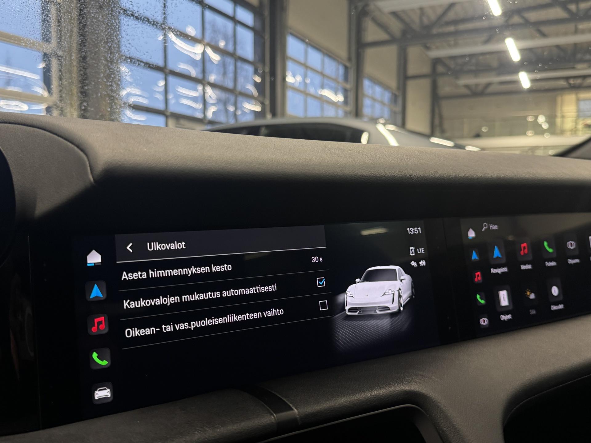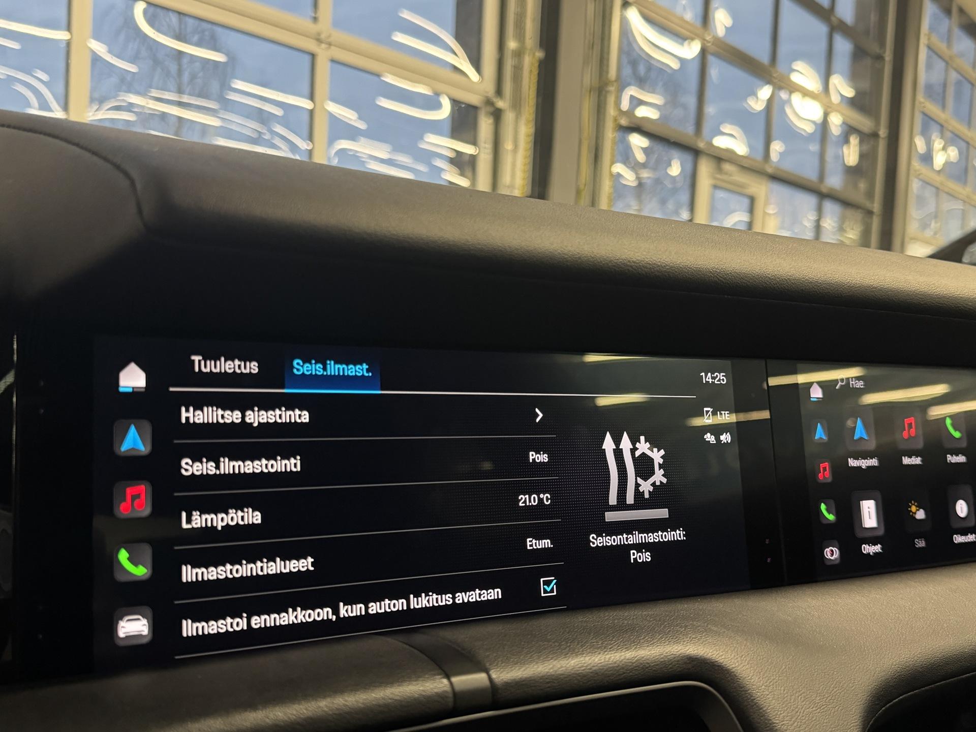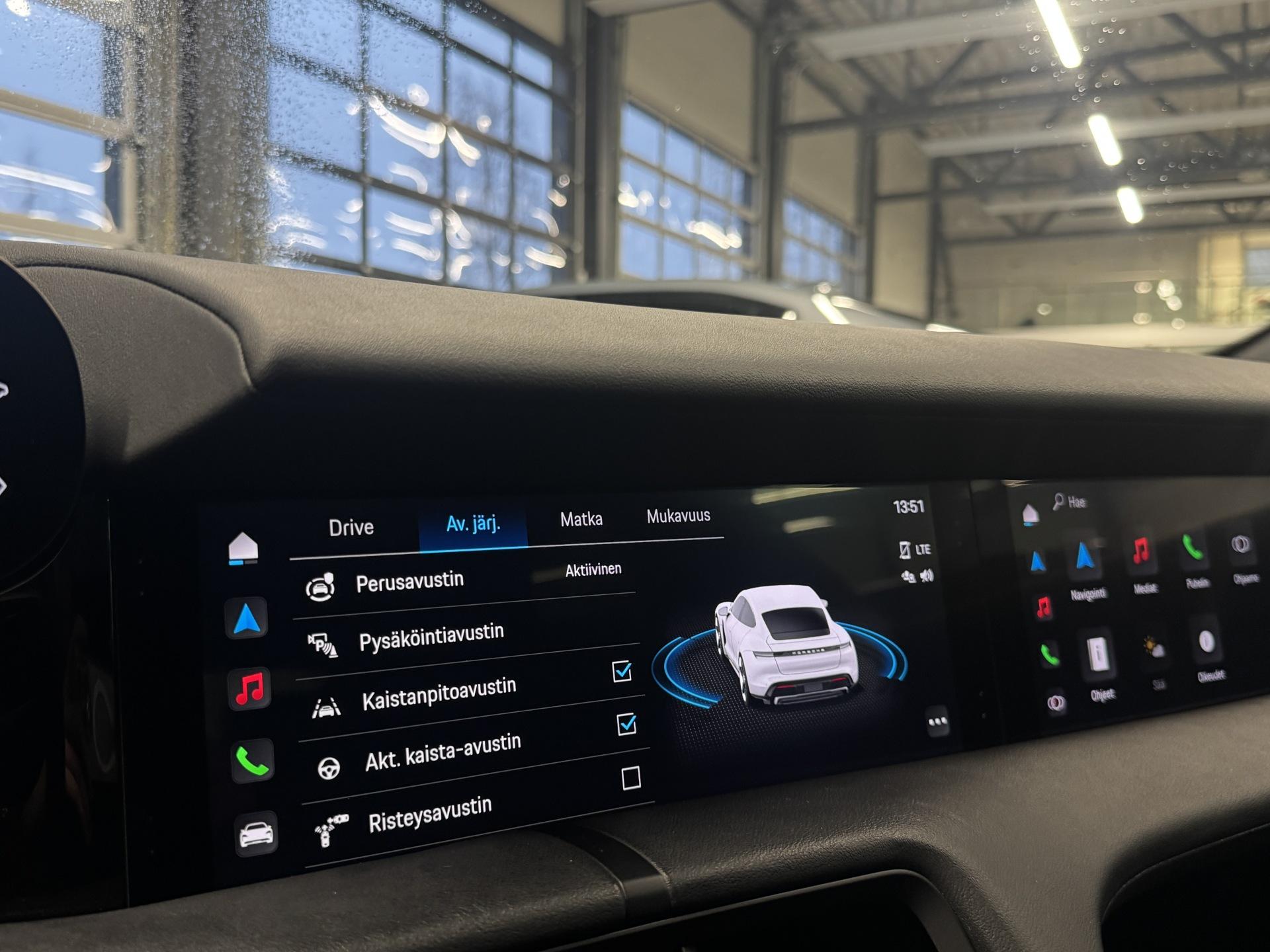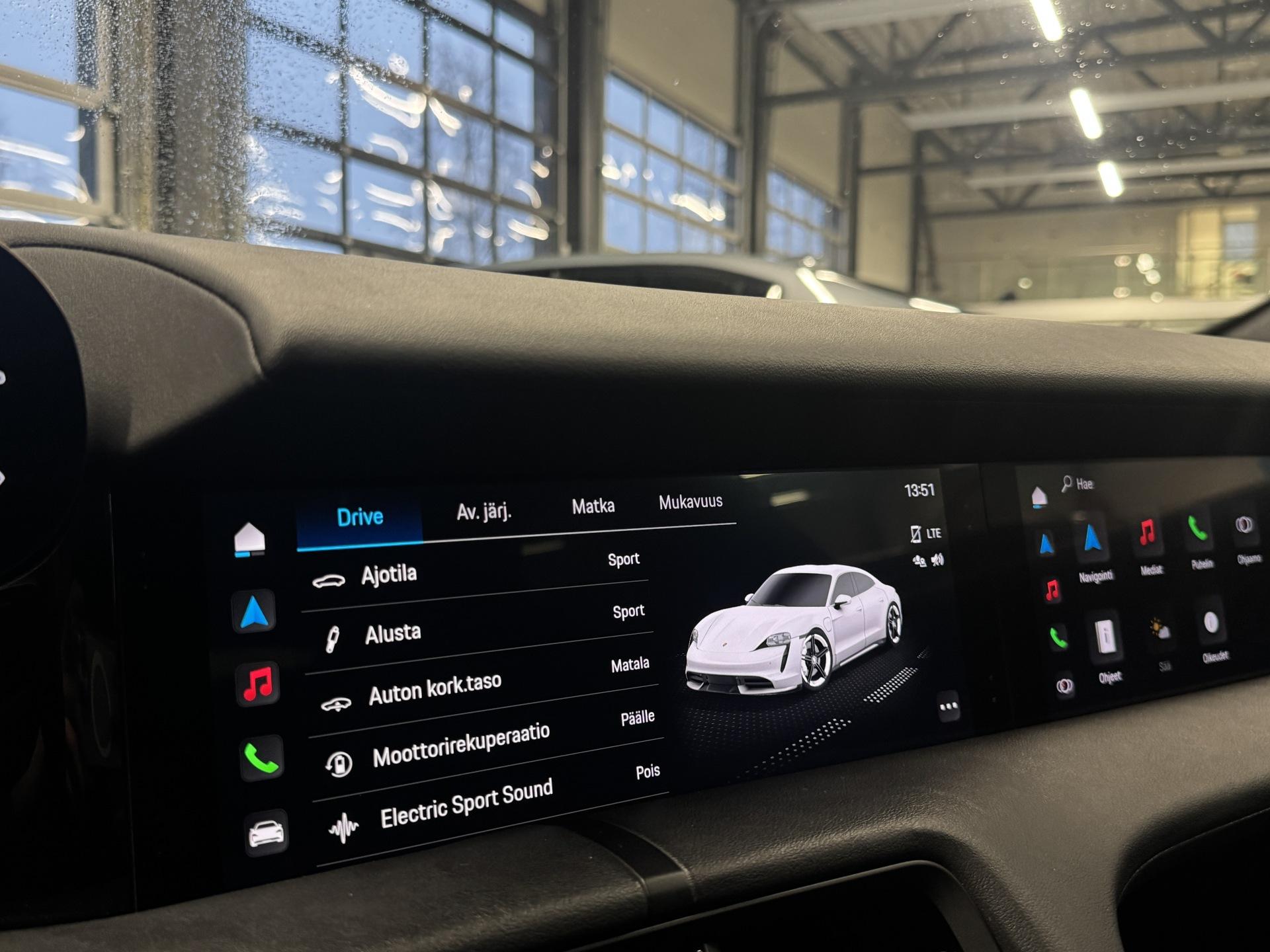 Kattavasti varusteltu upea Porsche Taycan 4S! Akkutakuu voimassa 160tkm / 12/2030 asti.Porschen huoltokirja (Viimeksi 47tkm), Adaptiivinen vakionopeudensäädin, Ilmastoidut sekä lämmitetyt etuistuimet muisteilla, 360-asteen pysäköintikamerat, Korkeus- ja jäykkyys säädettävät ilmajouset, Dual screen- infotainment näytöt, Navigointijärjestelmä, Digimittaristo, Apple CarPlay/Android Auto, Ajotilanvalitsin, Aktiivinen kaista-avustin, Kuolleen kulman varoitin, Kaistanpitoavustin, Pysäköintiavustin, Mukautuvat LED-ajovalot, Kuolleen kulman varoitin, Hätäjarrutusavustin, Törmäysvaroitin, Porsche InnoDrive, Kaksialueinen automaatti-ilmastointi, Bluetooth-puhelinliitäntä mediansiirrolla, USB, isofix, Yms!Kysy tähän autoon edullinen vaihto- tai rahoitustarjous!